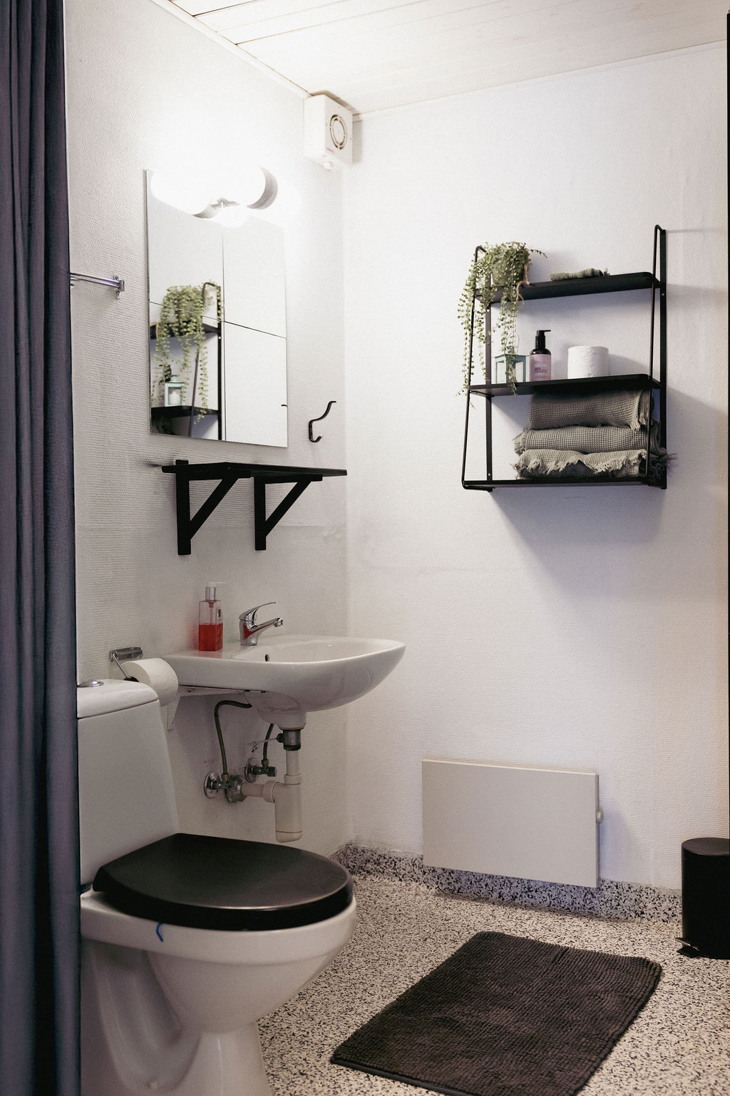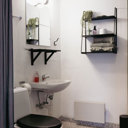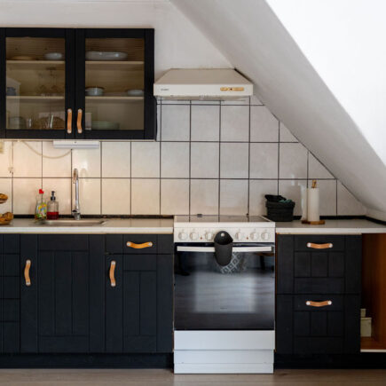 The bedroom is furnished with a comfortable king-size bed, ensuring a good night’s sleep. The modern bathroom is equipped with a luxurious rain shower and a toilet, making your stay even more comfortable.
